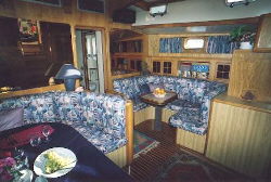 The living accommodation consists of 3 Guest Cabins (sleeps up to 6). Master cabin with en suite bathroom and a private desk entrance. Spacious double cabin beside an upper and lower bunk cabin. Forward accommodation is a comfortable two bedroom area with en suite bathroom. The crew have a seperate pilot's berth and cabin with two bunks as well as their own bathroom. |