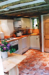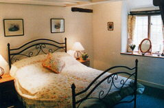 Enter into a beautifully fitted kitchen/dining room with beamed ceilings and exposed stone walls. Pine door leads to cloakroom/wc. Stairs to lovely galleried lounge with woodburner and colour TV. Views over lawned yard. 1 Bedroom (sleeps 2 plus 1 cot) with beamed ceiling and a wrought iron double bed. Stairs to gallery where there is sufficient room for a casual bed. Door to bathroom/wc nestling below eaves. Handheld shower in bath. Central heating throughout. |