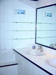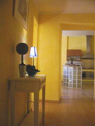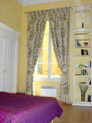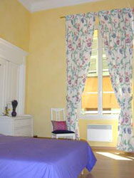 The living room is spacious and bright. There is a fresco painting on the ceiling. It has been assessed by experts working on behalf of ‘Les Bâtiments de France' (French historical buildings authority) and Monsieur Astro (director of ‘Le Palais Lascaris' a museum in the old town). They are in no doubt that the fresco was painted around 1750, with some ornaments realised later in the century. Unfortunately, they are not able to say who the painter was, but have agreed that a fresco in this area and in such good condition is very rare. When in this room, you get a wonderful feeling of being a part of history. There is a CD/tape player/radio, DVD player and a television should you wish to bring your favourite CDs and DVDs with you. The apartment has central heating should you ever need it. |