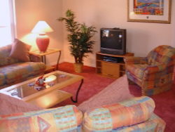 The living accommodation consists of: 4 Bedrooms (sleeps up to 10); 3 Bathrooms; Air Conditioning; Lounge; Large Kitchen; Dining Area; Cable TV; VCR and is fully equipped throughout. |