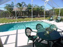 The villa has its own large, screened and (optionally) heated swimming pool, which is fenced to the rear and backs onto palm trees. |