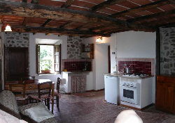 Casa GufinoOne of four sumptious apartments in a perfectly restored Tuscany farmhouse, il Gufo, which is nestled in twenty three hectares of chesnut trees, fields and native forest. This apartment was once the family home of the farmhouse, and has been fully restored with the original brick floors and ceilings. |