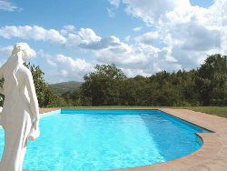 The villa has a private 12 metre x 6 metre swimming pool. At the centre of a 28-acre estate, the grounds are surrounded by olive groves, vineyards, and its own woodland with centuries-old oak trees. A perfect place for those who love privacy. You can admire a view of the torrent flowing through the valley below from the windows. |