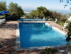 Patio doors lead onto the south facing private terrace with its own table, cushioned seating, cushioned reclining chairs, a barbeque and its own lemon tree to provide added shade. There is also a shared 10m x 5m swimming pool, set amidst trees and rocks. |