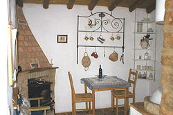 The living accommodation consists of 1 Bedroom (sleeps up to 2); 1 Bathroom with a walk in shower with a tiled seating area, sink with vanity unit under and w.c ; a Lounge with a sloping cane ceiling with wooden beams, Satellite TV, video recorder and radio/CD player, a section of reading books, puzzles, chess set, playing cards and books; the Kitchen/Dining area has the original bread oven dating back to the 19th century, original floor tiles from the Quinta and the original cane ceiling with wooden beams, and is equipped with a gas hob, fridge with freezer compartment, microwave, electric kettle and toaster. |