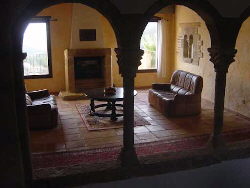 The living accommodation consists of 5 bedrooms (sleeps up to 10) and 2 bathrooms. There is a master suite with two adjoining rooms and a bathroom, and on a separate floor three twin or double rooms sharing a bathroom. The master suite has a king size double bed, jacuzzi in the bath, shower and double basins. The living area, includes a small library with broadband Internet connection and there is a childrens video room upstairs. There are four eating areas in the house, inside is the dining room, there is the south facing summer kitchen, east facing balcony with the view to the sea, and west facing balcony looking up at the mountains. |
