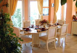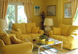 The living accommodation consists of 4 double bedrooms and bathrooms plus studio/double bedroom and shower room - and a separate flat of double bedroom, reception, kitchen and bathroom. It is ideal for 2-10 guests. It has two 40 foot reception rooms and four terraces. It is equipped with five televisions (Satellite), one video, two radio/cassette/CD players - and a small barbeque. |