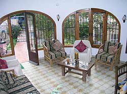 The living accommodation consists of 4 bedrooms (sleeps up to 9) and 3 bathrooms. The main floor of the villa comprises one double and one twin bedroom, 2 bathrooms (1 en-suite), a fully fitted kitchen with dishwasher, large lounge (DVD, satellite etc) with comfortable seating and sofa bed and a large naya (sun room) with conservatory style seating and a dining table. The lower floor comprises a double bedroom leading to a twin bedroom, bathroom and kitchenette. The villa has full central heating for winter lets. |